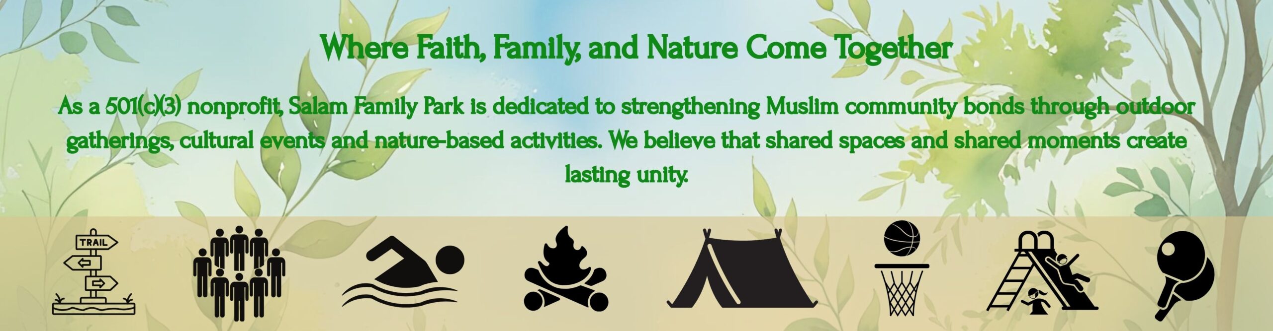 At Salam Family Park, a non-for-profit organization, our mission is to promote family bonding among Muslims by creating a welcoming, faith-centered environment for all ages. Whether it’s a weekend picnic, a lively game on the sports field, or kids laughing in our safe, colorful playgrounds, every part of our park is thoughtfully designed to strengthen family ties. With community, safety and togetherness at the heart of what we do, Salam Family Park is more than just a park it’s a space where Muslim families come to connect, reflect and create lasting memories.